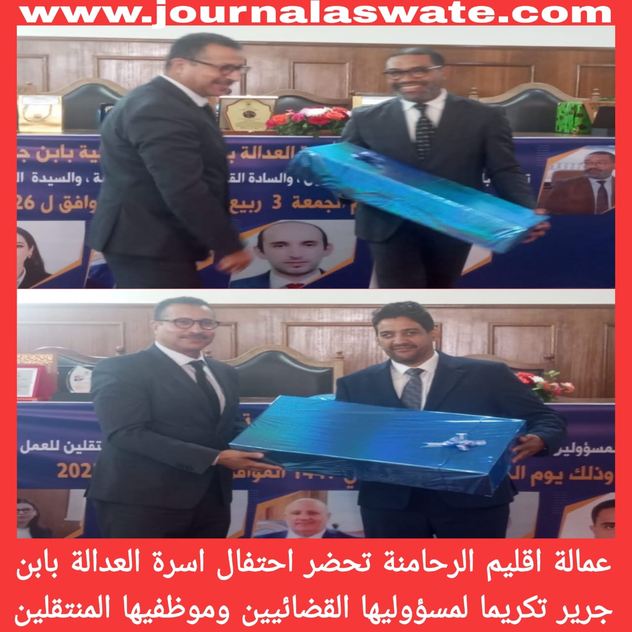 عمالة إقليم الرحامنة تحضر احتفال أسرة العدالة بابن جرير تكريماً لمسؤوليها القضائيين وموظفيها المنتقلين